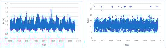 Wave height (Hs) and wave period (Ts) graphs from 2012 to 2022.