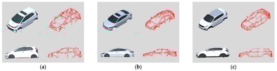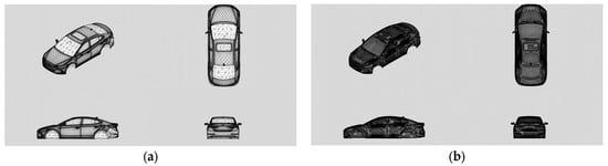 We used models created by measuring actual cars, from the 3D model providers CGTrader [29] and Hum3D [30], as virtual objects for each real object. CGTrader is the world′s largest supplier of 3D models, and it has been used in many studies. In particular, Ref. [31] studied autonomous driving using a real car and a corresponding virtual object in the CGTrader. Hum3D is a company that aims to create realistic modeling for applications such as AR and visualization, and 3D experts examine whether the modeling results match actual objects. This company is primarily used in research on cars [32,33,34].
