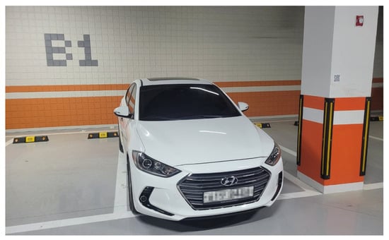 The experiments were conducted in an indoor parking lot, as shown in Figure 11, to ensure stable illumination. Because the illumination of this environment is determined by indoor lighting, it is relatively more stable than outdoor environments, which change in real time due to the sun, clouds, etc.