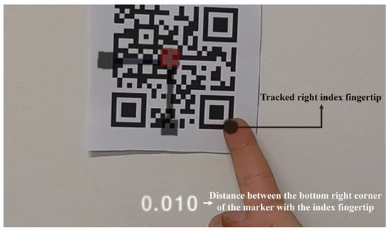 Registration is conducted by using markers to combine the real world and the virtual world (hereafter marker-based AR), or by using features between the real and virtual world through sensors (hereafter markerless AR). A marker generally refers to an object that can be identified and tracked through digital devices, such as camera sensors. There are various types of markers, such as simple flat images [3,4,5,6], infrared markers [7,8], and optical markers [9,10]. Markers are used as reference points for registration not only in marker-based AR but also in markerless AR. For AR applications where accurate registration is essential, such as in medical and industrial fields, marker-based registration is still required [11,12].
