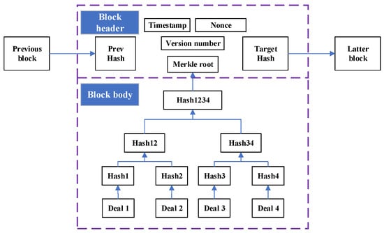 Blockchain technology is a distributed and decentralized database technology with the main features of data decentralization, transparency, security, and immutability [21]. It realizes secure storage, transparent verification, and immutability through encryption algorithms and consensus mechanisms. The blockchain consists of date blocks, each containing a certain number of transaction records, linked together by hash pointers to form a chain. The core concepts are decentralization and consensus mechanisms. Decentralization means that no central authority or third party controls the entire system, but rather it is maintained and managed by multiple nodes in the network. The consensus mechanism is used to ensure that agreement is reached among the nodes in the network to guarantee the accuracy and consistency of the data.