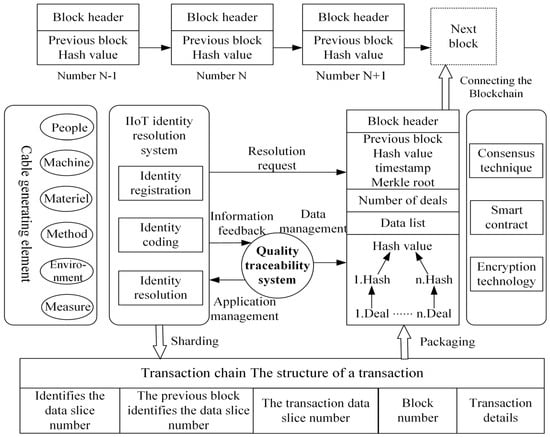 Wire and cable are important industrial products involving the national economy and people’s livelihood, which are hailed as the “blood vessel” and “nerve” of the national economy, providing the basic guarantee for the normal operation of modern economy and society. The data traceability of their production and circulation process is a key factor in ensuring their quality and safety management. We aim to solve the problems of unsafe data transmission, weak quality control, and information islands in the process of wire and cable quality traceability in order to improve the production management efficiency of wire and cable manufacturing enterprises and to reduce the cost of consumer quality traceability of wire and cable products. We analyzed the technical characteristics and advantages of Industrial Internet of Things (IIoT) identity resolution and the blockchain. Key technologies are introduced, a traceability method that integrates the two is proposed, and a quality traceability framework based on the IIoT identity resolution system and blockchain technology is constructed. By analyzing the quality information composition of the wire and cable supply chain, a new quality traceability model based on the wire and cable supply chain is established. Finally, through the verification of the developed quality traceability system, the quality traceability function and quality information of each production link of wire and cable are successfully realized. This paper fills a gap in the field of cable product quality traceability using the combination of IIoT and blockchain technology. According to this model, it also has some potential for the traceability of other industrial products.