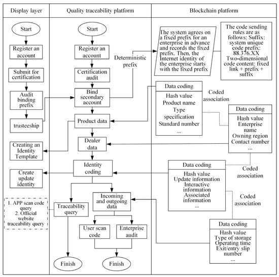 The management of transaction data is carried out through the quality traceability system. When the user applies for access resolution, the blockchain smart contract is executed to verify the user’s access rights, the data corresponding to the resolved identification are analyzed, and the data are finally shared and traced.