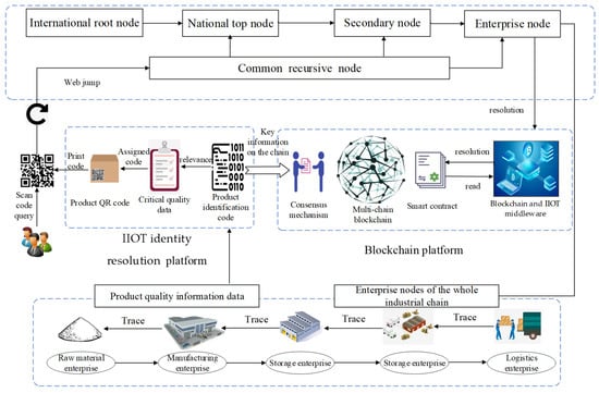 The IIoT identity resolution is combined with the blockchain to identify the information of each link in the whole industrial chain of the product. The identification information and the key quality data of the corresponding link are linked up. The cryptographic technology is used to encrypt it to ensure the credibility of the information on the chain. The user nodes of all parties jointly maintain the data on the chain, and the information is open and transparent so that the information of the whole product manufacturing process can be traced.