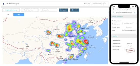 Figure 15 is the warning diagram of the tampering prevention system, according to the product, batch, and code number for the combination of queries to determine whether the tampering, query the system from the blockchain to obtain the internal Hash value of the traceability and automatically calculate the Hash value of the original data, through comparison can be judged whether the original data is true. The regional coverage map shows that the product should be in the region, otherwise it represents tampering.