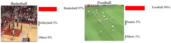 In the field of sports video classification, recent years have seen the development of various studies and methods, especially those focusing on addressing the challenges of rapid motion and low resolution [14,15,16], which have provided solutions from different perspectives. However, there is still room for improvement in terms of their generalizability and accuracy.