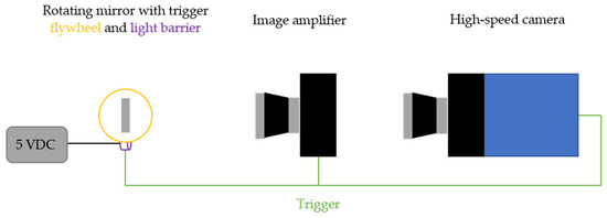 The image acquisition was realized with a self-developed system, shown in Figure 4, consisting of a rotating mirror, an image intensifier and a high-speed camera.