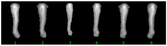 For further processing, six contours (corresponding to the six viewing directions) of the first exposure are cut out and are shown side by side in Figure 11.