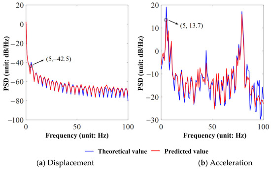 The PSD of predicted bridge responses using neural network structure ‘2-128’.