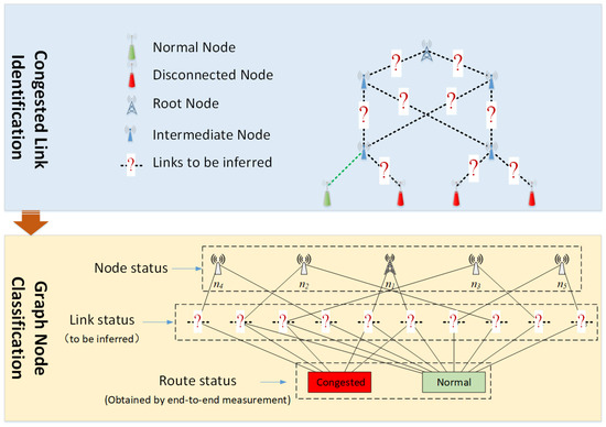 In this way, we transformed the problem of link congestion identification into a node classification task as shown in Figure 7, where the link status nodes were categorized into two classes: congestion and normal.