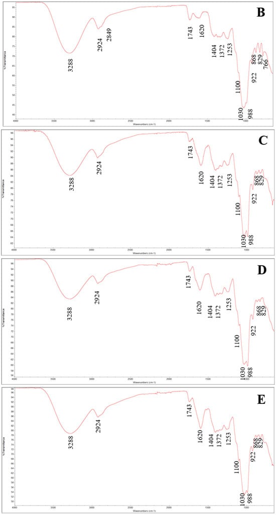 3.3. FT-MIR Spectral Characterization of Samples
