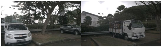 Table 5 shows the performance evaluation results of the proposed parking space annotation method based on Lidar and IMU. In Table 5, GT, TP, and FP represent the number of existing parking spaces, the number of correctly detected parking spaces, and the number of incorrectly detected parking spaces, respectively. As shown in Table 5, the mean precision and recall of the proposed method are 98.89% and 98.79%, respectively. Compared to the 95.2% precision and 93.6% recall reported in the literature [], the performance is greatly improved.