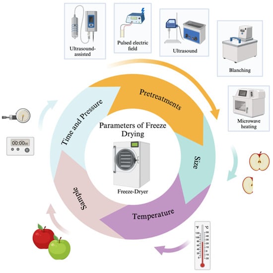 FD is impressed by several parameters, mainly containing temperature, length of the drying time, sample species, pretreatment, and pressure [53]. These parameters cause several results about the bioactive ingredients and flavor of material at the end of the FD processes. A wide variety of implications of FD are exhibited stewardly to parameters (Figure 2).