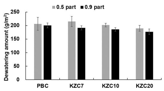 Dewatering amount of coating colors mixed with KZC series at different zirconium contents.