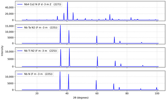 - Brauer, G.; Mohr-Rosenbaum, E. Beitrag zur Kenntnis des Systems Niob–Tantal–Stickstoff. Z. Anorg. Allg. Chem. 1974, 405, 225–229. [Google Scholar] [CrossRef]