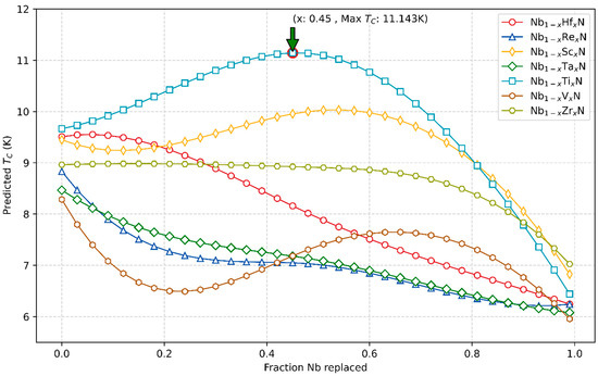 | Composition | Predicted TC (K) | Composition | Predicted TC (K) | Composition | Predicted TC (K) |