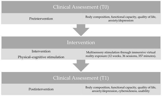 Two moments (T0–T1) were established for the assessment (pre–post).