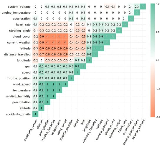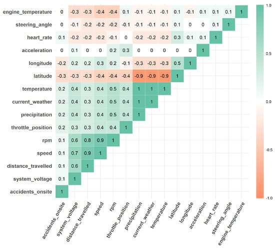 The initially constructed dataset of real observations included the nineteen features shown in the matrix in Figure 7.