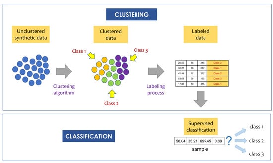 Several authors have also demonstrated the effectiveness of their models in downstream tasks. Most of these used generated data to improve the accuracy of prediction models as compared to results using only real data [,,,,,,,,]. In contrast, other authors have used the generated data in clustering processes [,].