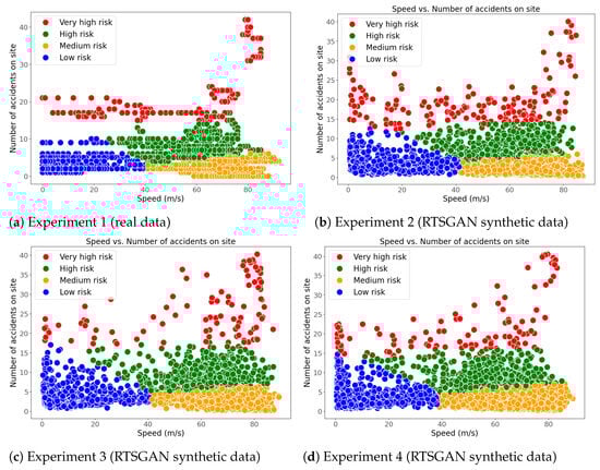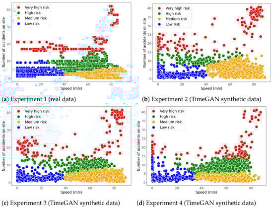 - A demonstration of the practical effectiveness of the generated synthetic data is shown by using the data in supervised classification processes with the MLP algorithm to assign a level of accident risk to an event using driving event information. The accuracy obtained by the models using only real data is compared to the accuracy of models using both real and synthetic data.