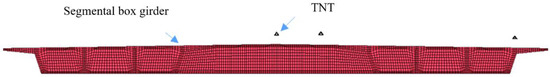 Finite-element model of ultra-wide box girder subjected to simultaneous multi-point explosions.