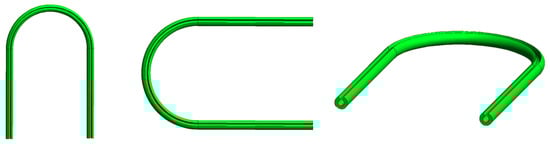 A thermoplastic polyurethane (TPU) tubular structure was designed using computational modeling software to form a ‘U’ shape to facilitate the controlled bending required for linear displacement. The structure has a cross-section with an outer diameter of 4 mm and an inner diameter of 2 mm. On the one hand, it features a 0.8 mm wide slot for inserting the optical fiber, ensuring a precise fit and preventing damage during deformation. The U-shape has an arc radius of 25 mm, connected laterally by two 50 mm tubes. This structure ensures that the linear displacement is precisely correlated to the curvature of the optical fiber, which is achieved using a transducer, as shown in Figure 2.