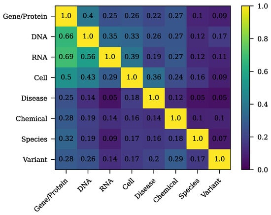 - Alex, B.; Haddow, B.; Grover, C. Recognising nested named entities in biomedical text. In Proceedings of the Biological, Translational, and Clinical Language Processing, Prague, Czech Republic, 29 June 2007; pp. 65–72. [Google Scholar]