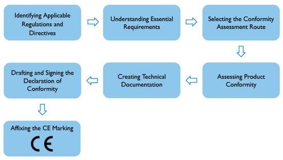 Obtaining a CE mark involves several key steps, from identifying the applicable regulations for the product to affixing the CE marking, as shown in Figure 4. During this process, the manufacturer must follow a rigorous conformity assessment procedure to ensure compliance with these regulations.