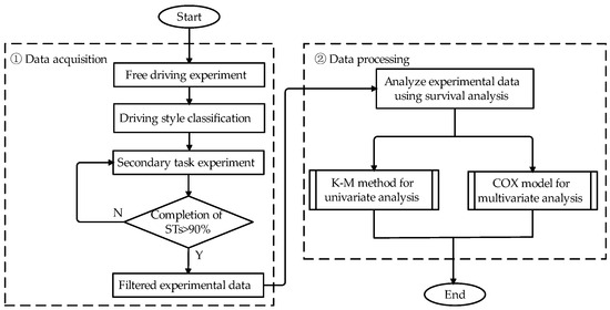 The methodology section is structured as follows: Section 2.1. presents details of the driving simulator experiment. Section 2.2. presents safety analysis using survival analysis approach. The framework of the methodology is shown in Figure 1.