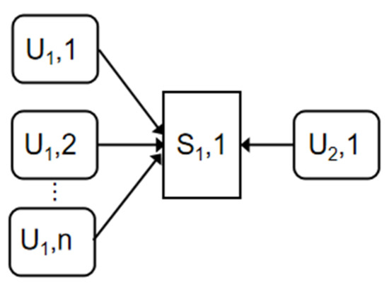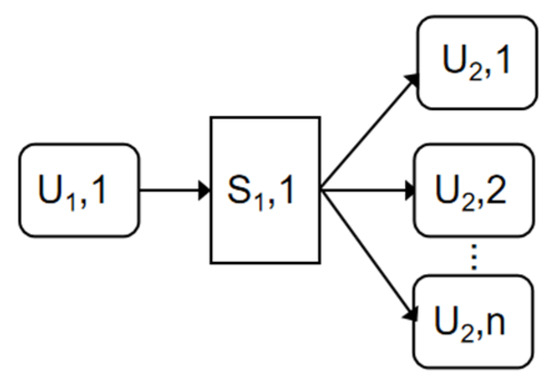 As depicted in Figure 8, (u1, 1), (u2, 1), (u2, 2), …, (u2, n) are n + 1 traceability units. (u1, 1) transitions to (u2, 1), (u2, 2), …, (u2, n) through a traceability scenario (s1, 1). During this transition, the following traceability information transformation relationship exists: