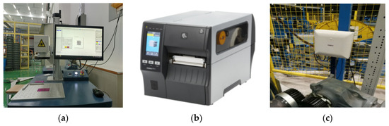 Production of the carrier for identification code. (a) Laser marking station; (b) Paper label printing; (c) Radio frequency identification (RFID).