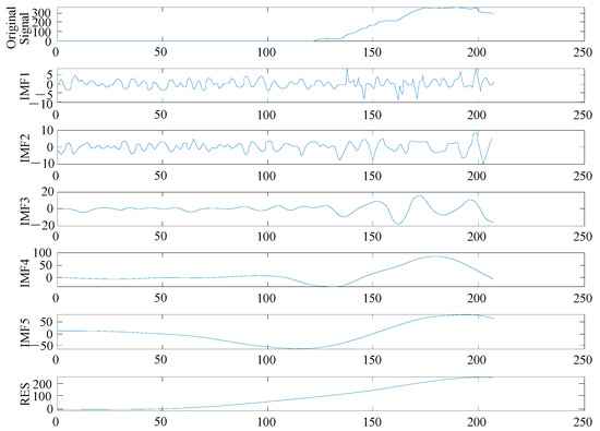 n times and compute the average of the IMF components obtained from each decomposition to eliminate the influence of Gaussian white noise on the true IMF components. The final obtained IMF components and the residual