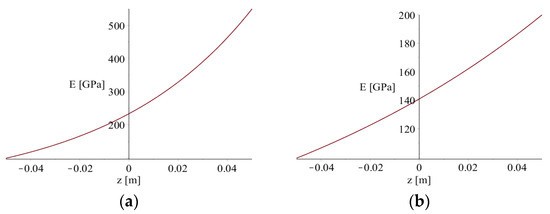 These honeycomb auxetic structures, structural composite materials by nature, may additionally assume a varying material composition through their thickness. This work considers that this variation is ruled by an exponential volume fraction law, where the constituent materials comprise a set of ceramic materials and one metallic material. In the present work, the composition of the material for each thickness coordinate is, thus, defined by the exponential law volume fraction that involves the constituent materials assumed to exist on the bottom and top surfaces of the structure.