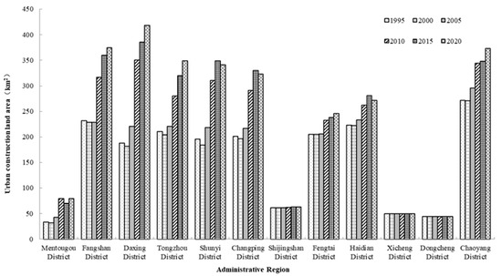 | Daxing District | −5.76 | −1.15 | −0.01 | 38.36 | 7.67 | 0.04 | 130.05 | 26.01 | 0.12 | 34.70 | 6.94 | 0.02 | 32.58 | 6.52 | 0.02 |