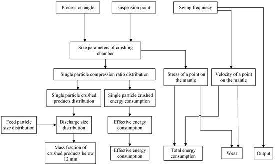 24], the impact of specific material and operating parameters on the crushing products, crusher energy consumption, and liner wear. In order to achieve optimal crushing, the 6-DOF crusher can theoretically adjust its working parameters freely. Therefore, it is necessary to expand the research on the results of previous research [