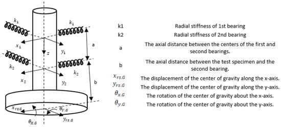 In the mathematical model of the spin shaft, the main rotor shaft is modeled as flexible. Using the developed model, it is also possible to size the rotor shaft under relevant constraints with optimal values. Figure 4 illustrates the main rotor shaft and its bearings. For a shaft supported by bearings at two points and free at one end, the translational and rotational movements of the center of mass along two different axes are defined as follows:
