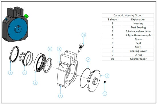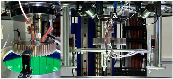 The system used for measuring radial and axial stiffness of bearings is detailed in Figure 7. The system includes a 3-axis accelerometer and a thermocouple. The bearings’ stiffness, characterized by nonlinear properties, is determined based on elastic displacement values obtained from different radial and axial loading conditions. The accuracy of these measurements is crucial, requiring minimal error for the successful completion of the application. Therefore, laser displacement sensors have been utilized for the measurements.