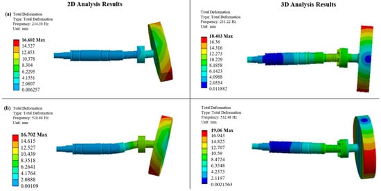 General Axisymmetric and 3D modal analysis results (a) 1st natural frequency (b) 2nd natural frequency.