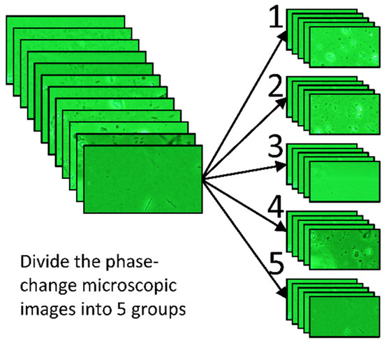 Figure 4 and Table 1 illustrate the data division procedure. First, PCM images were randomly divided into five groups. We generated training data for each group using the method described in Section 2.4.1. This ensured that the training data from different groups were generated from different PCM images. For the five groups of generated training data, three groups were used as training data and two groups were used as validation and test data, respectively. The variability of the results owing to differences in the training data was evaluated by creating five datasets with different data assignments, as depicted in Table 1 (five-fold cross-validation).