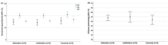 - Vasileios, A.; Athanasios, S.; Antonios, S.; Nikos, G.; Giorgos, P. The increase of VO2max variation and the specific biochemical parameters in soccer players after a pre-season training program. J. Phys. Educ. Sport. 2018, 18, 686–694. [Google Scholar] [CrossRef]
