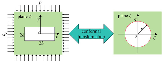 According to the theory on complex conformal transformation, the mapping determined by the solution function is conformal mapping. When it comes to engineering, the Schwarz–Christoffel equation is generally adopted to transform a complex shape into a simple one, as shown in Equation (8):