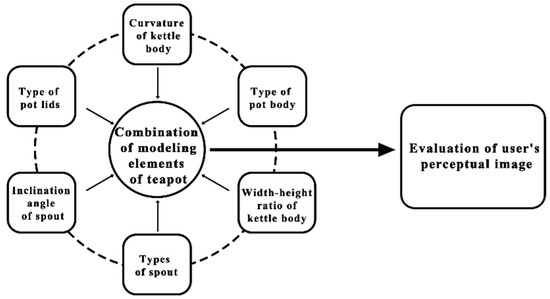 Grouping analysis of teapot shape elements. Explanation: Grouping model of teapot shape elements and their impact on user evaluations.