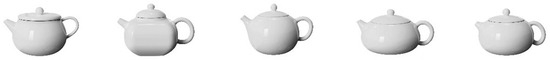 Through network data capture and literature research, a total of 221 teapot samples were collected. After eliminating images with unclear modeling features and excessive similarity, 60 representative shapes were selected as the initial experimental samples for classification research. Eight characteristic elements of each teapot were counted as the conditional variables. To avoid the influence of color and texture on the experimental results, the samples were processed in grayscale.