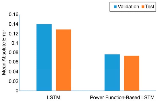 To further substantiate these findings, Table 5 presents the prediction performance metrics, demonstrating that the LSTM model achieves an MAE of 0.1288, whereas the power-function-based LSTM model significantly improves this with an MAE of 0.0733. This confirms that the LSTM model developed with the power function exhibits superior predictive performance when compared to the standard LSTM model.