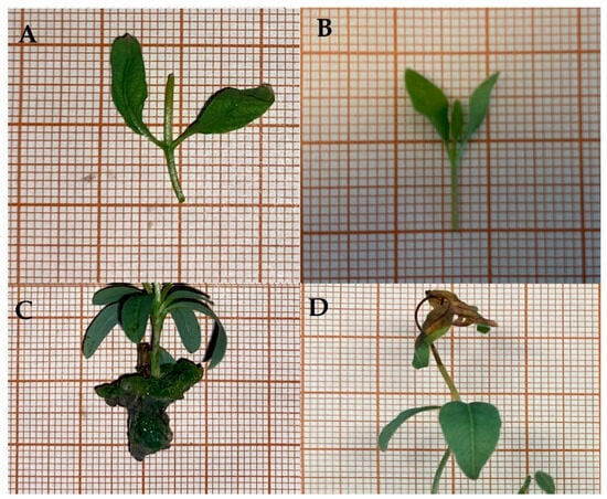 Not all explants placed onto the medium started to grow; in some cases, death of entire cultures or apical necrosis or callusing at the explant base were observed (Table 2, Figure 2C,D).