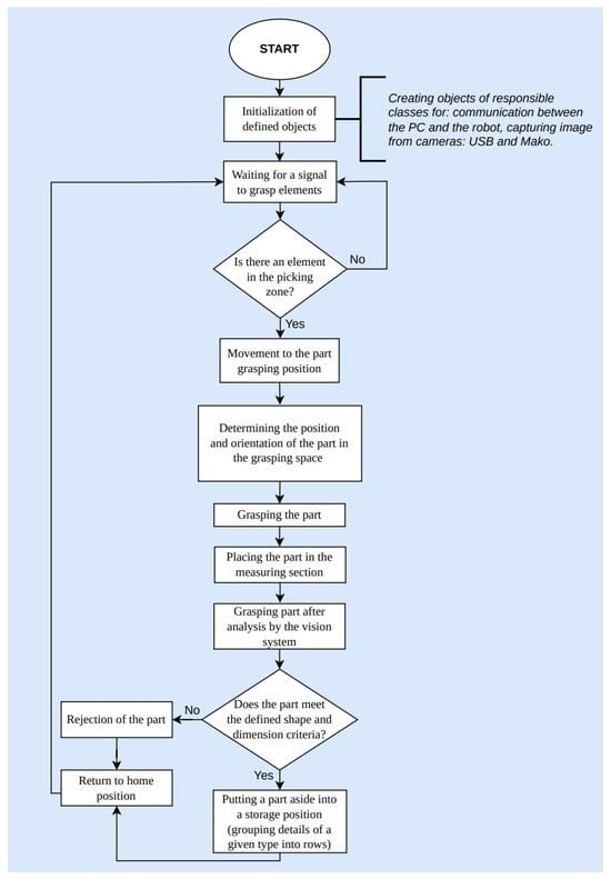 Figure 5. Block diagram of the designed algorithm of the robotic quality control station.