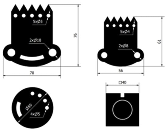 A group of semi-finished products differing in shape and dimensions were developed to carry out functional tests. A detailed description of the basic geometric dimensions of the semi-final products is presented in Section 3 (Figure 10).