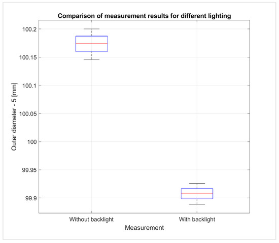 Figure 19. Comparison of results for measurements without backlight and with backlight lighting; outer diameter of the part—5.