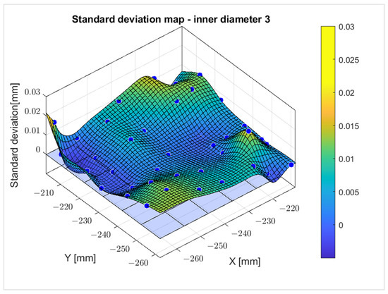 Figure 21. Hole diameter standard deviation map—3 (without backlight lighting). Blue dots—measured values.