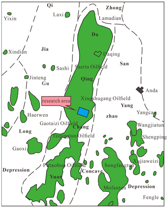 The study area located at the central part of the Daqing Placanticline in the Songliao Basin, China.
